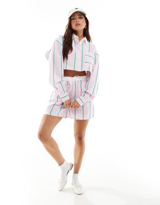 ASOS DESIGN shorts with contrast waist in pink stripe (part of a set)
