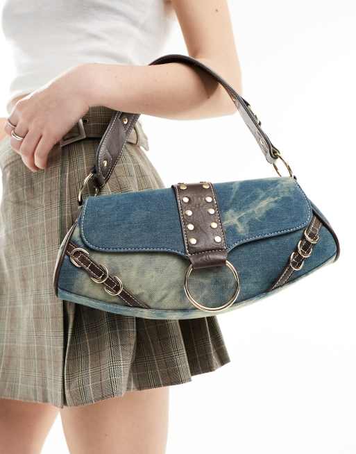 ASOS DESIGN shoulder bag in washed denim with hardware in blue