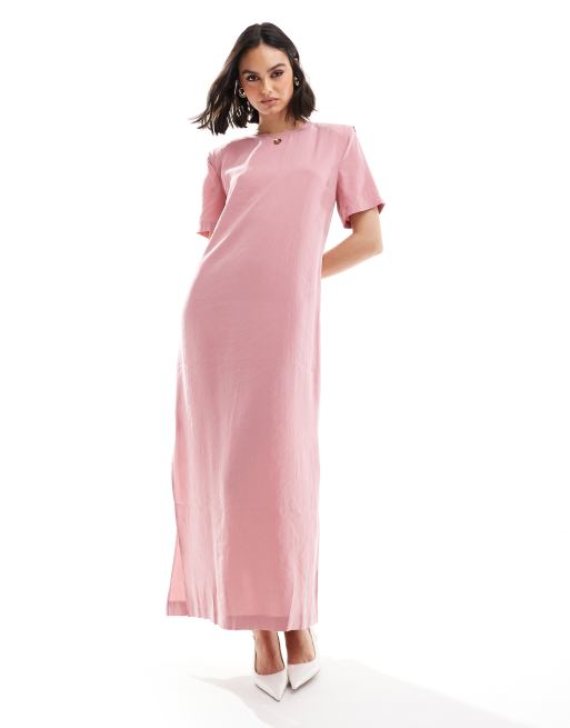 ASOS DESIGN shoulder pad t-shirt midi dress in dusky rose