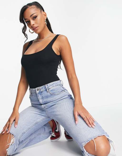 ASOS DESIGN singlet bodysuit with scoop front and back in black