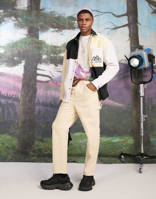 ASOS DESIGN skater fit pants in textured fabric in beige