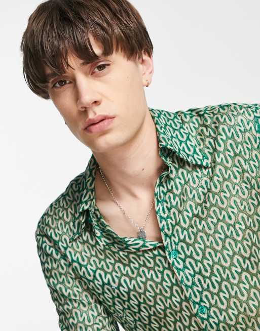ASOS DESIGN skinny 70s collar knitted shirt in green