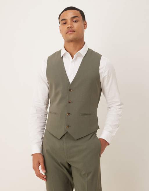 ASOS DESIGN skinny fit waistcoat in khaki