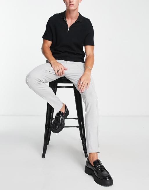 ASOS DESIGN skinny jersey smart trackies in grey with red dipped drawcords