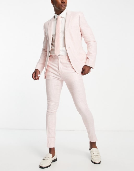 ASOS DESIGN skinny linen mix suit in pink pinstripe
