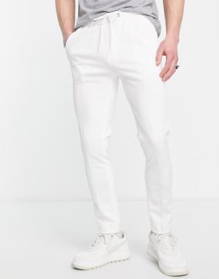 ASOS DESIGN skinny smart trackies in white texture