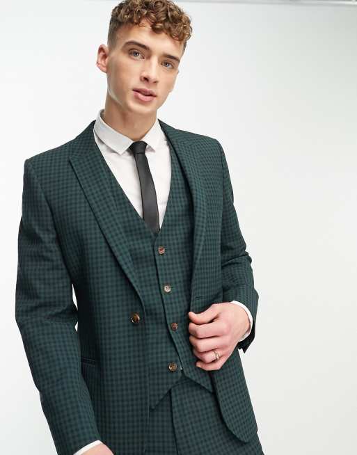ASOS DESIGN skinny suit jacket in green gingham
