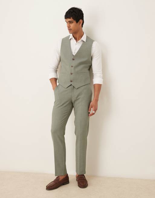 ASOS DESIGN skinny suit pants in khaki cross hatch