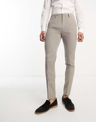 ASOS DESIGN skinny suit pants in micro check in stone