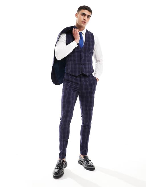 ASOS DESIGN skinny suit pants in navy tonal check