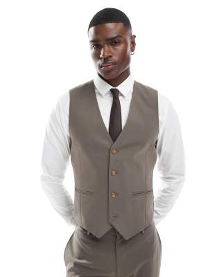 ASOS DESIGN skinny suit waistcoat in mink brown