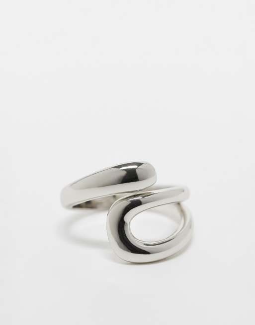 ASOS DESIGN sleek open-ended wrap ring in silver tone