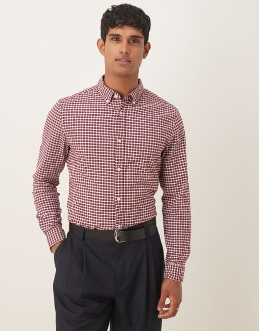 ASOS DESIGN slim fit check shirt in burgundy