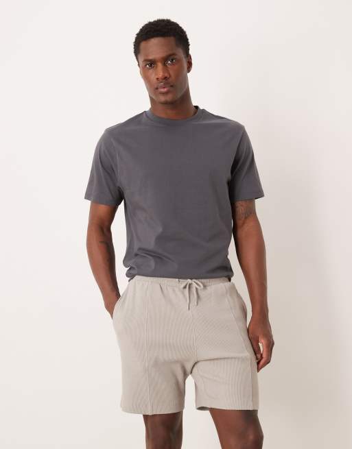 ASOS DESIGN slim fit waffle jersey shorts with pintuck in grey