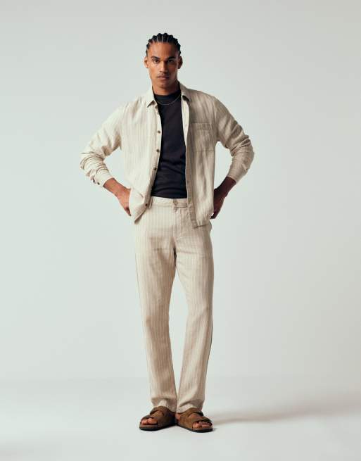 ASOS DESIGN slim linen blend pants in stripe (part of a set)