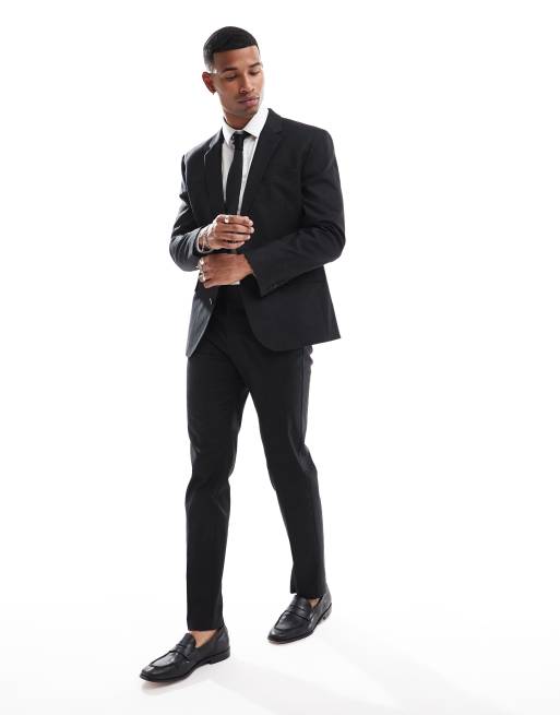 ASOS DESIGN slim linen mix suit pants in black