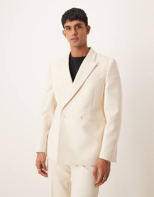 ASOS DESIGN slim longline heavyweight suit jacket in cream