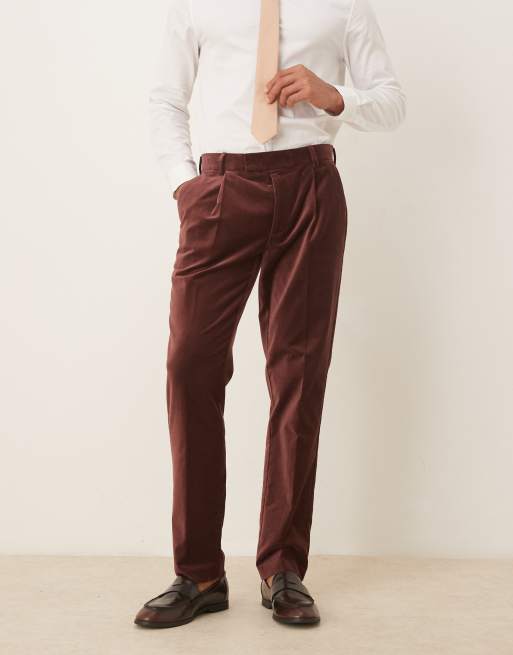 ASOS DESIGN slim pleat front suit pants in dark brown cotton velvet