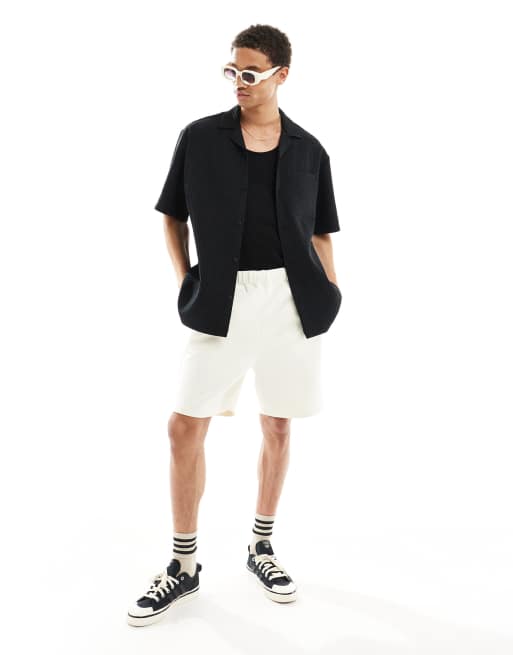 ASOS DESIGN slim scuba-style fabric shorts in off white
