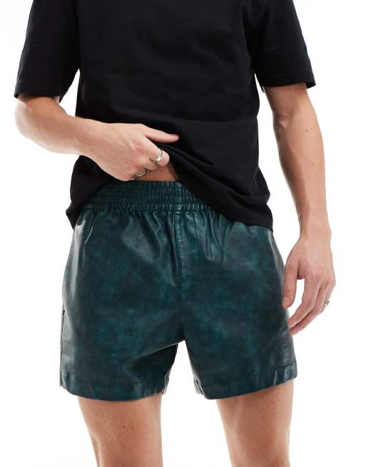 ASOS DESIGN slim shorts in green washed leather look