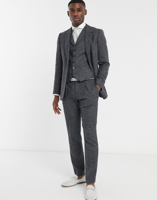 ASOS DESIGN slim suit in blue and grey 100% lambswool tweed