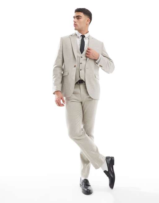 ASOS DESIGN slim suit with wool in stone tweed