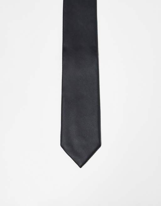 ASOS DESIGN slim tie in black faux leather