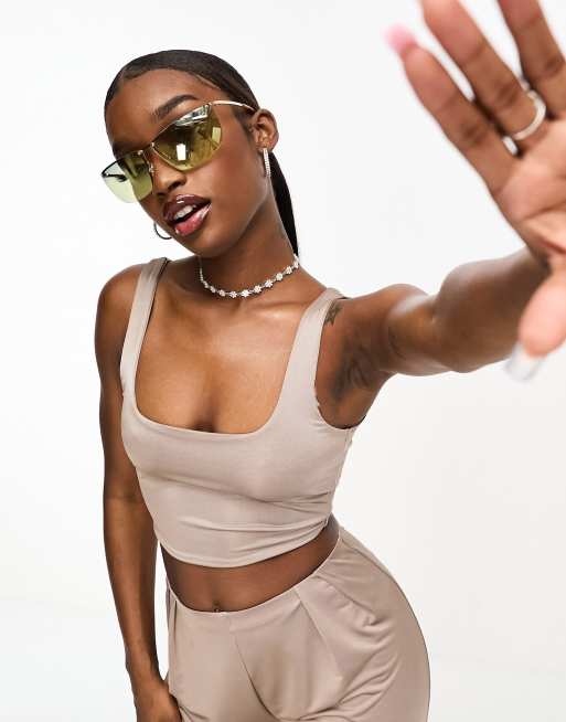 ASOS DESIGN slinky disco singlet in mushroom (part of a set)