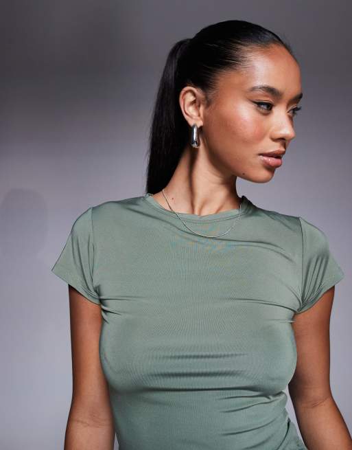 ASOS DESIGN slinky short sleeve baby tee in khaki