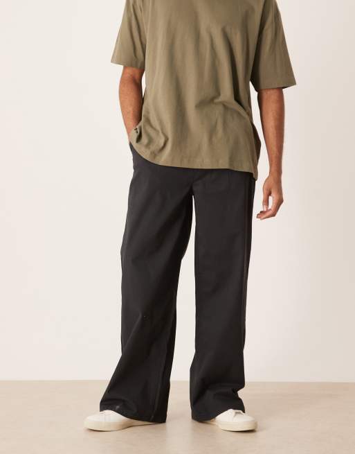 ASOS DESIGN smart 100% cotton wide leg pants in black with deep pleat