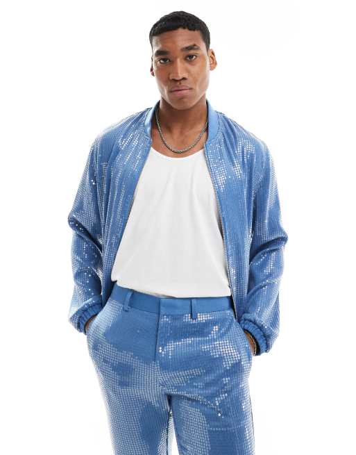 ASOS DESIGN smart 80s sequin bomber jacket in blue (part of a set)