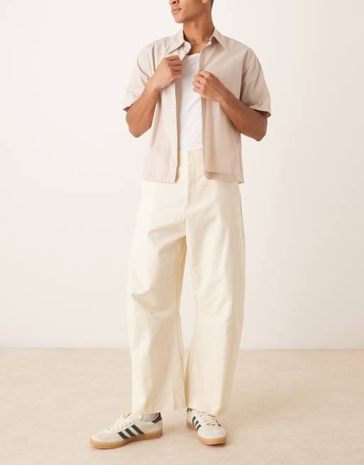ASOS DESIGN smart barrel leg cotton chino pants in white