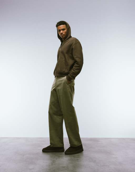 ASOS DESIGN smart cotton wide leg corduroy pants in stone with side adjusters