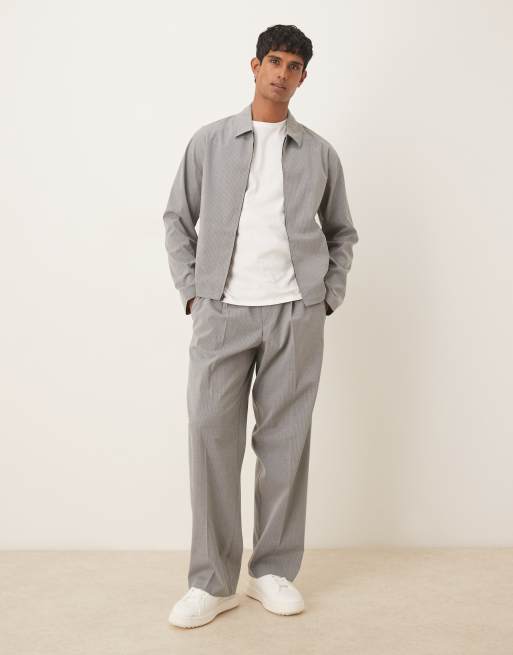 ASOS DESIGN smart cropped harrington set in grey pinstripe