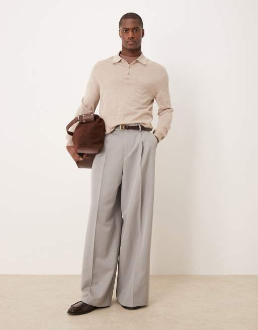 ASOS DESIGN smart extreme wide leg pants with front pleats in light grey