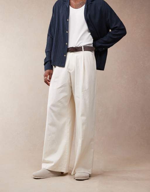 ASOS DESIGN smart loose leg linen blend pants with front pleat in white