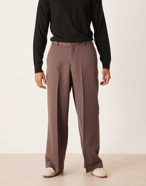 ASOS DESIGN smart loose leg pants with elasticated waistband in brown