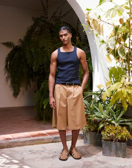 ASOS DESIGN smart oversized bermuda shorts with front pleat in camel