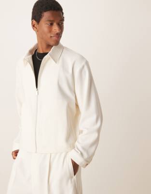 ASOS DESIGN smart oversized blouson jacket in white microtexture (Part of a set)