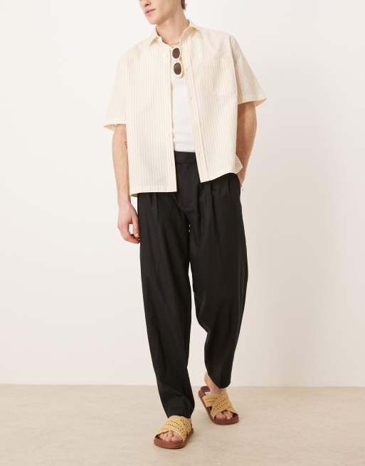 ASOS DESIGN smart oversized tapered linen blend pants with front pleat in black