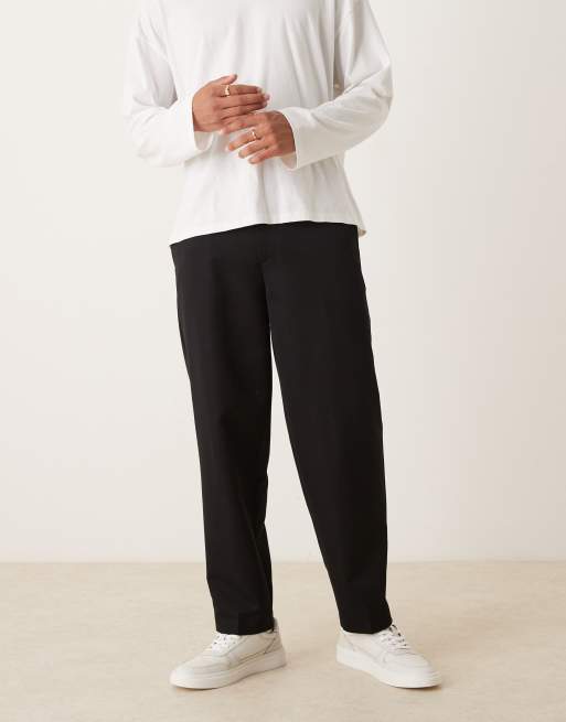 ASOS DESIGN smart oversized tapered pants with front pleat in black