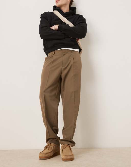 ASOS DESIGN smart oversized tapered pants with front pleat in khaki