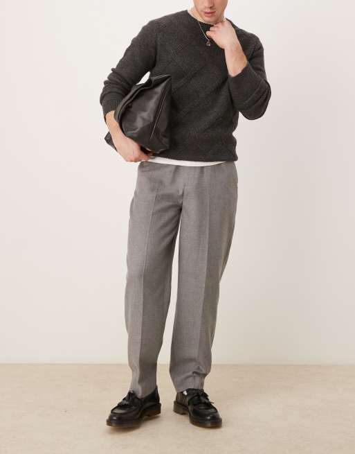 ASOS DESIGN smart oversized tapered pants with front pleats in light grey brushed fabric