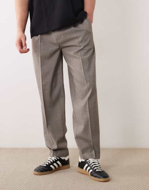 ASOS DESIGN smart oversized tapered pleated pants in grey melange