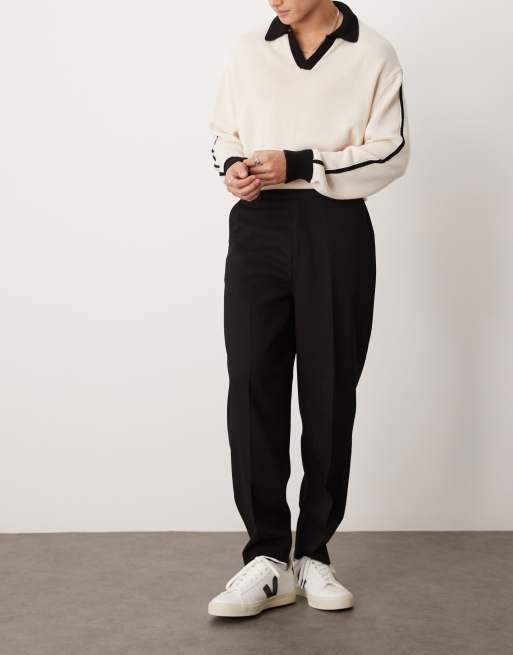 ASOS DESIGN smart oversized tapered textured pants in black