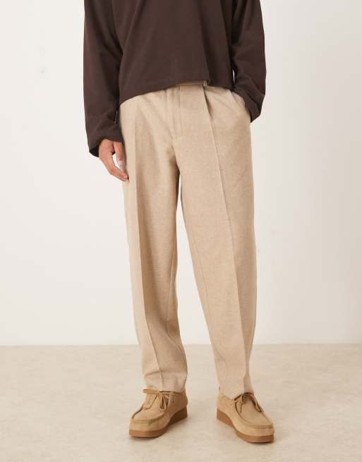 ASOS DESIGN smart pleated oversized tapered wool blend pants in stone