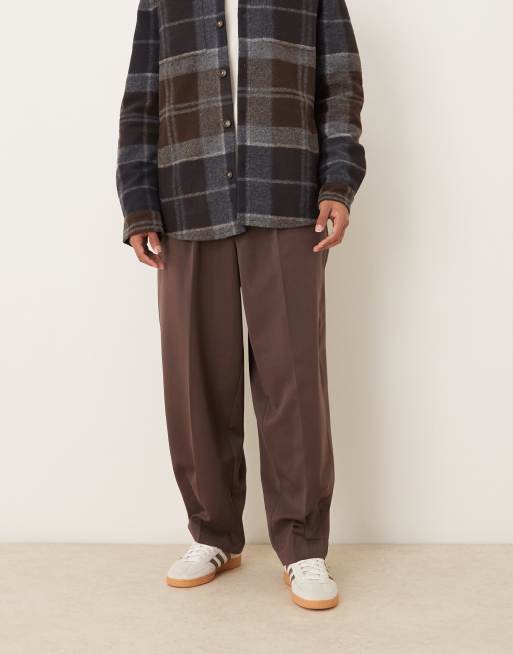 ASOS DESIGN smart pleated wide barrel leg pants in brown