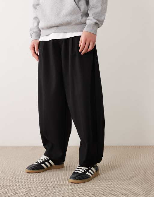 ASOS DESIGN smart pleated wide barrel leg pants with wool in black herringbone