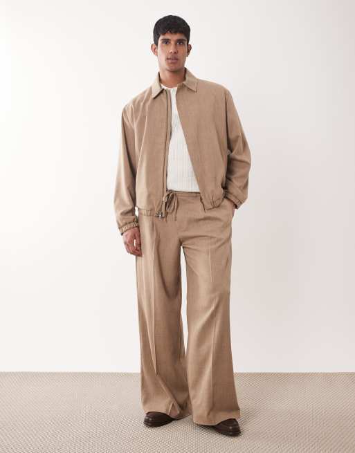 ASOS DESIGN smart set pleated blouson in beige