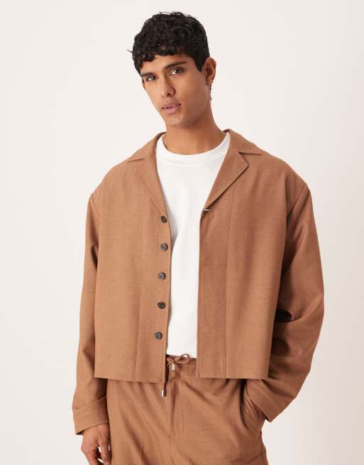 ASOS DESIGN smart shirt jacket in brown (Part of a set)